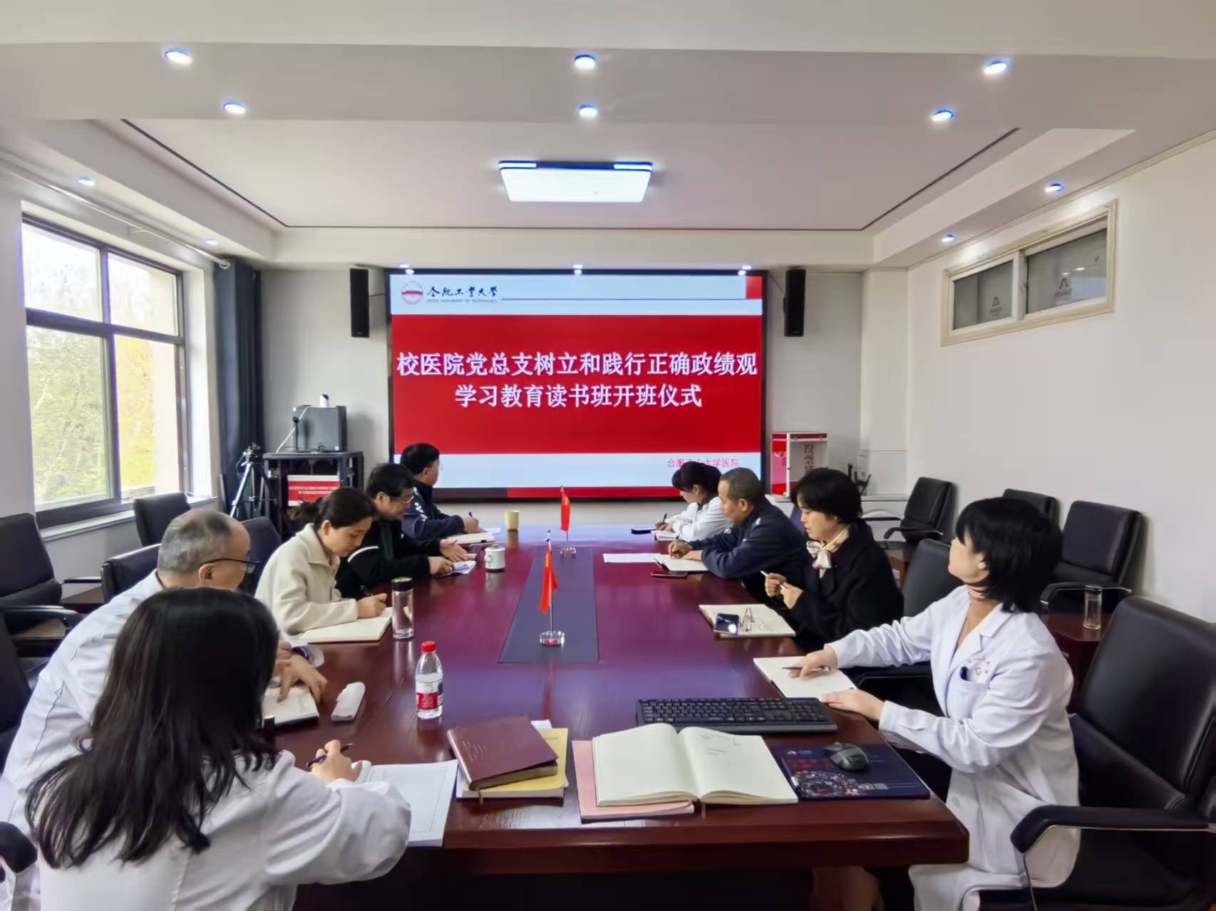 3月26日下午,医院举行树立和践行正确政绩观学习教育读书班开班式暨医院党总支理论学习中心组集体学习。院党总支书记李金华主持会议并讲话,医院党总支理论学习中心组固定成员、各党支部书记参加学习。 在集体学习中,李金华传达学习《关于认真学习贯彻习近平总书记重要讲话精神扎实开展树立和践行正确政绩观学习教育的通知》文件精神,并领学《习近平总书记地方工作期间坚持正确政绩观生动实践》部分章节,院长王志华领学《求是》杂志发表习近平总书记重要文章《让愿担当、敢担当、善担当蔚然成风》,副院长夏仕银传达学习中共安徽省委整治形式主义为基层减负工作领导小组办公室、省纪委办公厅关于2起整治形式主义为基层减负典型问题的通报精神。 下一步,医院将以读书班为抓手,通过个人自学、集体研讨、参观见学等形式,引导党员领导干部深刻把握正确政绩观的核心要义和实践要求。坚持学习教育与医疗服务、师生健康保障、医院管理等中心工作深度融合,聚焦师生就医急难愁盼,持续提升服务质效、严守医疗安全,切实把学习成果转化为守护师生健康、服务学校发展的实际成效,推动学习教育走深走实、见行见效。 (汪惠惠/文 刘效萍/图 刘效萍/初审 李金华/复审)